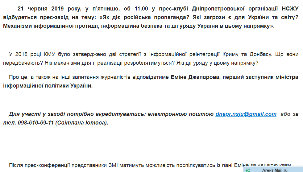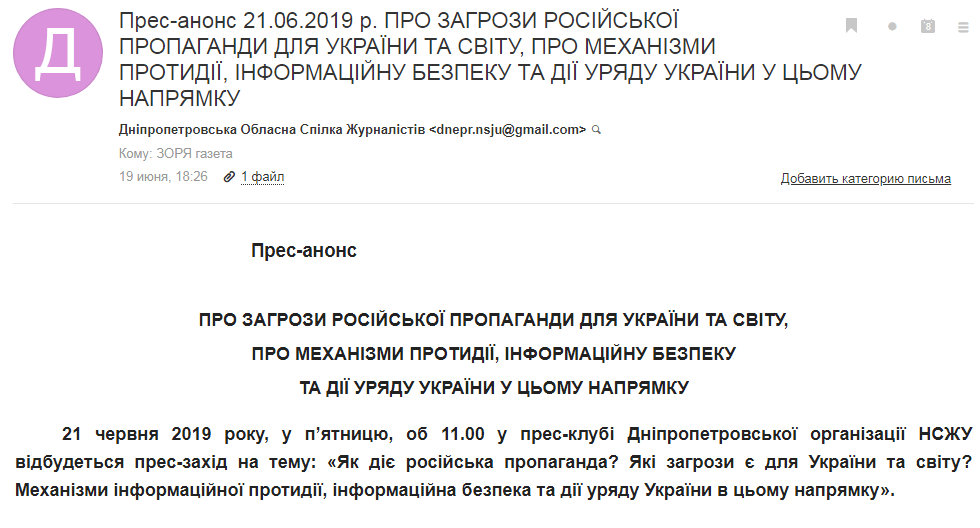Вот, посмотрите, как выглядит такое приглашение, пришедшее на почту от Союза журналистов Украины 19 июня автору статьи: