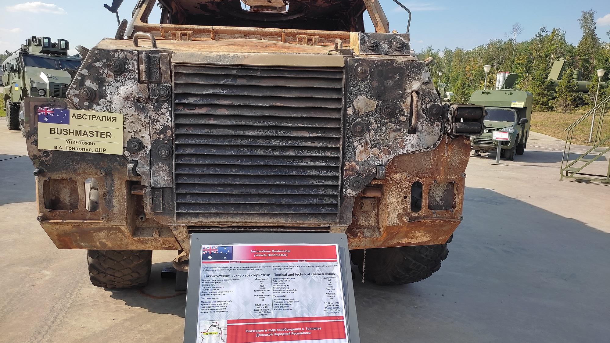 В парке Патриот, в рамках Международного военно-технического форума «Армия-2022», проходит выставка захваченной ВС РФ трофейной техники и оружия в ходе спецоперации на Украине. Выставка наглядно иллюстрирующая весь украинский нацизм, а также поддержку украинского нацизма и терроризма США и странами НАТО, никого не оставит равнодушным